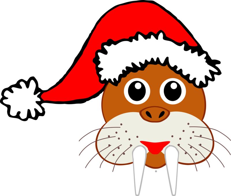 Walrus 001 Head Cartoon Brown with Santa hat